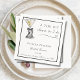 En liten bit närmare "I Do" Hjärtaccent Dirty Martini Svart och vit Bröllopsdusch Servetter – Martini-inspirerade Bröllopsdusch Dekorationsidéer: Vackra, unika och eleganta personliga bröllopsdusch servetter som blandar modern stil med tidlös sofistikation. Servetterna visar en smutsig martini med två oliver och en elegant svart rosett mot en ren vit bakgrund, accentuerad med ett hjärtdesign. Kombinationen av graciös script kalligrafi och snygg blockstil skapar en chic, förfinad look. Sätt scenen för en oförglömlig martini-inspirerad bröllopsdusch firande med nära och kära när de överöser den blivande bruden med kärlek. Anpassa dessa bröllopsdusch servetter med dina evenemangsuppgifter.