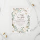 "En liten snöflinga är på väg" "inbjudningar till babydusch med vintern blommigt, guld och silver snöflingor och löv.