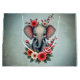 En liten sommar: baby-elefanten i ett hav av blommor. Den här fantastiska designen är en vacker illustration av en liten elefant från baby, som är målad i känsliga grått-nyanser. Dess rosa innersta öron tillför en lekfull och charmerande beröring. Dess stora, uttryckliga ögon utstrålar nyfikenhet och vänlighet, medan dess söta ansiktsuttryck är rent varm. elefanten sitter försiktigt fastklingad bland en mängd färgstarka blommor i pulverfärgade skuggor av rött, orange, rosa och vitt.