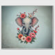 En liten sommar: baby-elefanten i ett hav av blommor. Den här fantastiska designen är en vacker illustration av en liten elefant från baby, som är målad i känsliga grått-nyanser. Dess rosa innersta öron tillför en lekfull och charmerande beröring. Dess stora, uttryckliga ögon utstrålar nyfikenhet och vänlighet, medan dess söta ansiktsuttryck är rent varm. elefanten sitter försiktigt fastklingad bland en mängd färgstarka blommor i pulverfärgade skuggor av rött, orange, rosa och vitt.