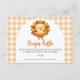 Den här designen har thanksgiving kalkonduschtemat "Ett litet Turkiet är på väg" med en söt kalkon, pumpor och en rustik gingham gräns i varmt höstfärg.