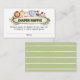 Fyll i din safari-temade babydusch med det här samordnande Diaper Raffle-kortet. Med söta vattenfärgssafari-djur och saftaccenter, den här kortgästen från inbjudan för att ta med en dykförpackning för en chans att vinna ett pris. Anpassadets text och en design som matchar inbjudan, tackkort och andra infogningar - perfekt för att koppla ihop vilden med ett tema! Observera: Safari-djursgrafik och träsegmentsdesign är fasta och kan inte redigeras, flyttat eller tas bort.