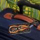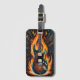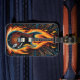 En livfull gitarr på eld i en passionerad visning bagagebricka
