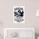 En svart och vit illustration av en tysk Shepherd hund sitta på en bänk i en park. Hund tittar mot tittaren och verkar vara avslappnad och innehåll. Ord A Loyal Heart är Din Underbarare skatt är skriven i ett fet, dekorativt teckensnitt ovanför och under hund.
