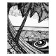 Ett stillastående strandhammocklandskap teckning bläck stil