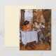 En lunch (1868) av James Tissot är en gammal realistisk konst från den viktorianska eran, ett fint konstverk med porträtt av kärlek och romantik. Ett ungt par på en romantisk dejt. Herrskapet äter en avslappnad lunch på en lokal café, bistro eller restaurang. Hon har en söt hund i knäet medan hon dricker en kopp te.
