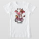 Cute brun och vit ko som kör på sin cykel med en fullt av blommor basket. Glöm inte att byta namn innan du beställer!