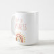 En vacker gåva till te och kaffe älskare! Enkel, modern typografi med ord "A KOPP of HAPPINESS" och en boho-regnbågsgrafik i jordnära toner.
