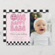 En Lycklig Bebis Glad Ansikte Rosa Foto Inbjudningar