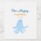 En lycklig blå bläckfisk under havets födelsedag vinflaska etikett