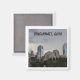 En magnet med en stadsbild av Cincinnati, Ohio.
