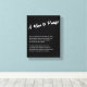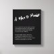 Gratulera till den fantastiska man som ger ditt liv styrka, vänlighet och orubbligt stöd med det här påfallande kanvastrycket "A Man to Pising". Med en rörande dikt som på ett vackert sätt uttrycker uppskattning och kärlek är den här eleganten svartvit grafik en tidlös hyllning. Perfekt för Fars dag, födelsedagar, årsdagar eller bara för att visa tacksamhet mot en make, far, mentor eller någon inflytelserik man, är en daglig påminnelse om hans ovärderliga närvaro och påverkan.
