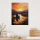 Genom att fånga en tidlös koppling mellan människan och hans lojala följeslagare, ger den här krävande oljemålningen liv ett gott ögonblick vid sjön. När sol på ett skickligt sätt sjunker under horisonten sitter mannen och hans trogna hund sida vid sida och delar en tyst förbindelse som ord inte kan uttrycka. Det stilla vatten spegel är solnedgångens livliga nyanser och ger en varm och försiktig glöd åt sitt sällskap.