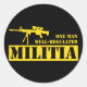 En man välreglerad milis runt klistermärke