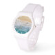 Fågelns öga-syn på en varmstrand med lugn och skumliknande vinkar. Kärlek i havet? Ät den. Anpassa till dina önskemål.