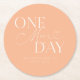 Den minimalistiska bröllop-repetitionsmiddagen underlägg typografiktexten som säger "en dag till". Bakgrunden är persikor.