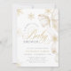 Fira ett glatt vinterögonblick med den här inbjudan till en Merry Little Baby Shower, som innehåller elegant guld glitter snöflingor och en mjuk buggbåge för elfenben. Perfekt för en helgdag babydusch med ett varmt, festligt och sofistikerat stil. Perfekt för december eller jultemat firande för pojke eller flicka.