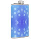En metallflaska med en livfull blå bakgrund med ljusblå bokeh-cirklar. Designen skapar en lekfull och modern känsla.