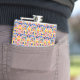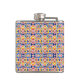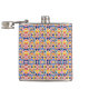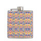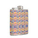 En metallflaska med ett livfullt geometriskt mönst fickplunta