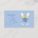 Elegant Calligraphy skriver något blått Möhippa, tematiskt receptkort med vattenfärgblommor. På andra sidan finns det ett glas champagne med en bukett.