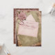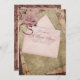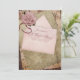 Vintagestilinbjudningskort för möhippan som göras i vintagestil skyler över brister en rosa ros, rosa band ett rosa kuvert med kortet att något att säga "dig är inbjudna till en möhippa" som är tillbaka av inbjudan har stället som tillfogar din information.