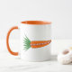 Den här roligtens festliga mugg har en tecknad av morot. Någon har mumlat in i moroten och lämnat ord-renarna, som är etsad i grönsakens kött. Det här är en julklapp för renarna. Utformningen visas på en orange och en vit ring stil mugg, men finns även på andra stilar och färg i muggar. Det skulle vara en underbar julklapp.