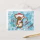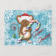 En underbar mus i hans lilla tomtehatt som håller ett smaklöst tittar candy cane och en söt liten prydnadssten hängande från hans svan med en variation av blått mot bakgrunden med små, medelstora och stora snö flingor och ordens "Säsonhälsningar" i rött. Ett underbart sätt att låta folk veta att du tänker på dem under helgdagarna!