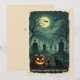 Världen är fullt av buller. Men ibland är tystnad, den djupa och oroande tystnaden det som verkligen talar. Kortet är en inbjudan till tystnaden, en kort, papper-tunn portal till en månbelyst kyrkogård där hela världens frantiska prat reduceras till en viskare. Det är en scen av naken, absurd skönhet som fångas inte med en turas ilska utan med en välavvägd hand av ett vittne till den existentiella komedin. Observera det märkliga tableau: en solitär jack-o-lantern, dess tomma flina kommentar om villkor, en tyst kommentar om champagne flaska, eller kanske en icke-alkohollös ersättning, som fortfarande är glömd, en kvarleva från några tidigare firande, och en svart katt, dess ögon som glorifierar med abyssens vetskap. I bakgrunden har figurer i skelettet en långsam, makaber dans, vars ballett lyser av likgiltigheten hos måne. Tvärtom förklaras "END" med en finalitet som är både humoristisk och oroande. Det är ett djärvt påstående, en perfekt summering av helgdag, året eller till och med ett särskilt tröttsamt möte. Det röda fingeravtrycket - ett tecken på ett slutgiltigt, oåterkalleligt val - sälar avtalet, vilket gör att en liten bit av det djupa personliga tillskottet till det allmänt ofrånkomliga. Detta är inte ett kort för dem som blundar för de stora frågorna. Det är för dem som hittar humor i tomrummet och poesi på kyrkogården. Det är ett bevis på att det finns tid för bra party även i slutet av världen. Och för en verkligt unik Julhälsningar.