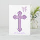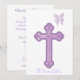 En Ny Liv Dop Inbjudan! En himmelsk andlig förvandling. Jesu lila kors tar ledningen för evenemangets helighet. En lila fjäril symboliserar själens förvandling. Anpassa för en gyllene entré till detta speciella evenemang. Anpassa.