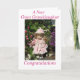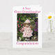 Fantastisk liten docka i vackra trädgårdar och budskapet "En ny underbar barndotters Grattisar"