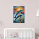 En oljemålning stil lodrät HD poster delfiner som hoppar ut från vatten