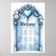 En ornerad ljusblå arkway med accenter för blommig poster