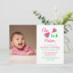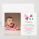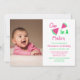 En i en meloninbjudan med första födelsedag med rosa och grönt färg-skript. Fotomall via Pixabay med licens enligt CC0 och måste ersättas med ditt eget foto