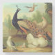 En påfågel, duvor, hönor och en Jay i en parkera Underlägg Sten
