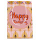 En medelstor vattenfärgsdesigner-presentsäck som temats för thanksgiving kan bytas till kostym vid varje särskilt tillfälle. Färg är orange, lila, pinkar och gröntar.