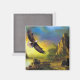 Ett vackert bergslandskap med örn med vingar som är utdraget och som flyger på ett skonsamt sätt ovanför detta sceniska, rustiska landskap. En patriotisk symbol.
