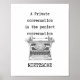 "Ett privat samtal är perfektens konversation" av Nietzsche från "Human, All too Human: A Bok for Free Spirits". Citat i typsnittet klassisk skrivmaskin med en illustration av vintagen skrivmaskin för att hedra filosofen och eran. Detta är en utmärkt gåva till filosofin älskare, självister och Nietzsche fläkt. Visste du att Nietzsche var den förste filosofen som använde en skrivmaskin (modern bärbar dator)? Skrivaren var lika unik som sin ägare (Malling-Hansen skriver boll) och kallas nuförtiden till och med för Nietzsches skrivmaskin. Ta reda på fler citat från hans bokar i min butik! Skål!