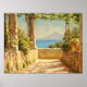 Målningen visar en solig terrass i Capri med blommor och kalkstenspelare. I bakgrunden ser man vulkanen Vesuvius.