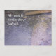 Det här vykortet innehåller en nära bild av regndroppar som faller ned i vatten, med moss och stenar synliga under yta. Det står: "Allt jag behöver är en regnig dag, och du." Romantisk och söt.