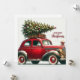 En röd årgång i julklapp med ett träd-kort på Helgdag tak.