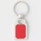 en röd bakgrund med svart gräns rektangulärt silverfärgad nyckelring