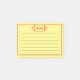 En röd, orange, mönstrad titelgrafik post-it block