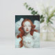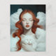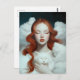 En rödhårig kvinna som håller en katt i molnen vykort