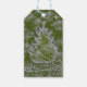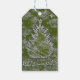 Säg att Lycklig Helgdag är med den här minimala helgdag. En grönt Julgran på gröntens bakgrund med ljusdammning av snö.