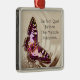 En rosa butterfly på en gräddsäcksbakgrund julgransprydnad metall