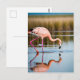 En Rosa Flamingo som ser sin reflektion i Vatten Vykort