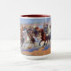 " Är en rusa för timmret" en målning för Impressionismstilstrid av amerikanmålare och skulptören, Frederic Remington, visande cowboys för C. som 1889 skjuter på Apache indier i southwesten.