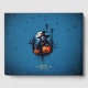En scen på Halloween med en skeletthäxa. Hennes beniga kropp är försedd med ett tatuerat svart landskap och en potikens häxhatt som fladdrar i vinden. Hon är lysande pumpor av olika storlekar, och den skötta ansikte ser både glad och skrämmande ut. Vissa pumpor avger varm orange. Paletten färg består av mörk, t.ex. svart och blå, i kombination med ljusa accenter av orange