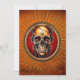 En skalle vars närvaro inspirerar både glöd och fascination. Dess skalle kännetecknas av tid, med en strålande skatt i dess centrum, en gemen som pulserar med skakande färg och håller liv och död i hemlighet. Skallens öga-socklar ser ut som två glödande kolvar, klarrött och piercing, som om de kunde se själens djupaste hemligheter. En andedräkt av filigree löv, vars grönt veniner kontrasterar med blekens ben. Denna levande omfamning symboliserar den eviga liv- och dödscykeln, medan en konstgjort skapad kedja omger den - ett tecken på den oskiljaktiga kopplingen mellan världen.