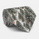 Tie i en skog av snö täckt Julgranar, i svart, vitt och grått, med spridning av lite rött paket